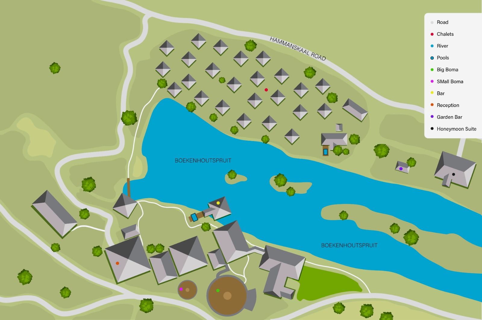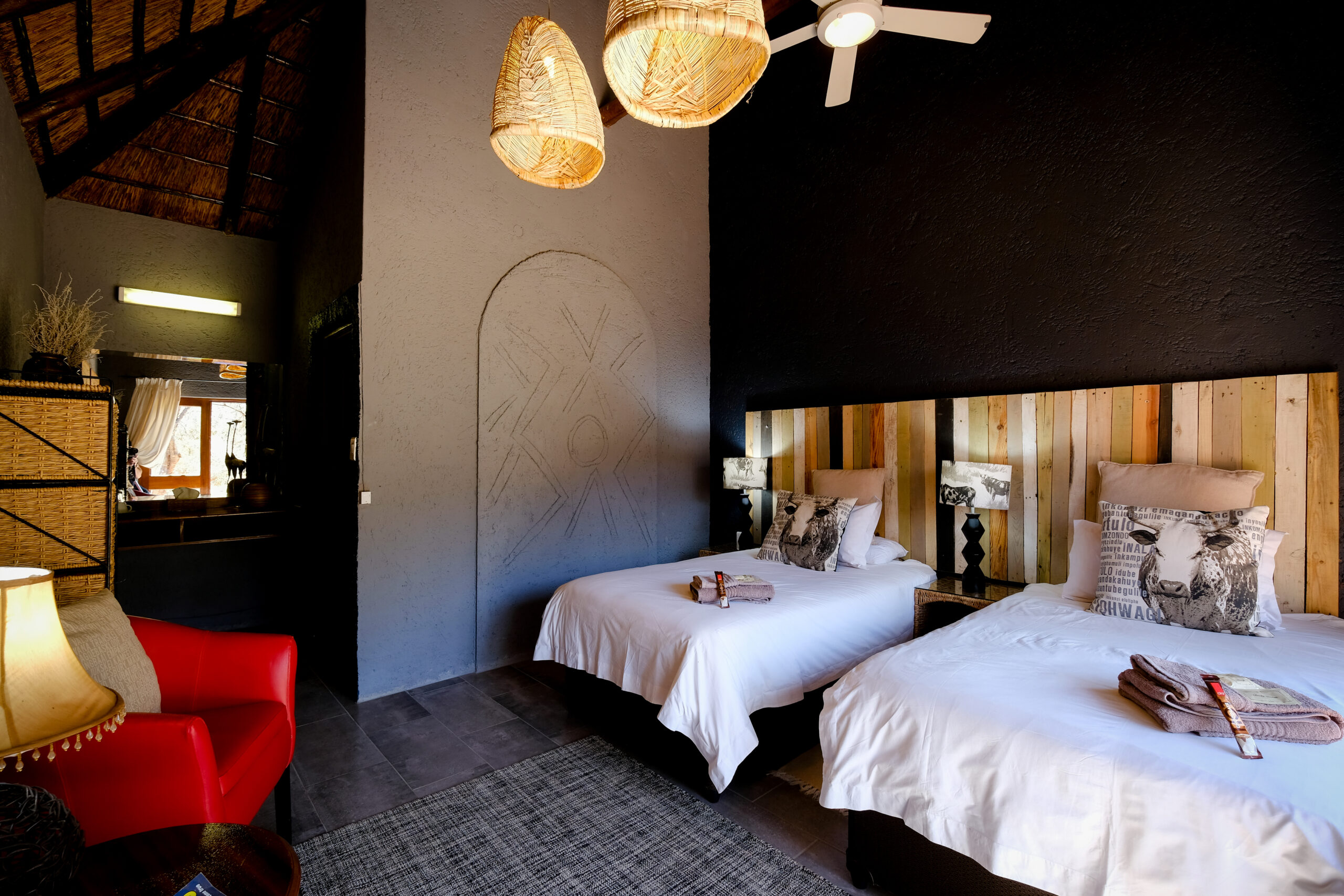 At Intundla, just 55 minutes from joburg. Our rooms are designed with peace in mind which is why you’ll always find cosy bed linens to snuggle-up under after a full day of conferencing, teambuilding, or as guest at a wedding. The Game Lodge is built around a beautiful dam with green lawns and is popular with conference delegates and teambuilding attendees. The conference and function rooms, and teambuilding facilities are all in close proximity to the chalets.